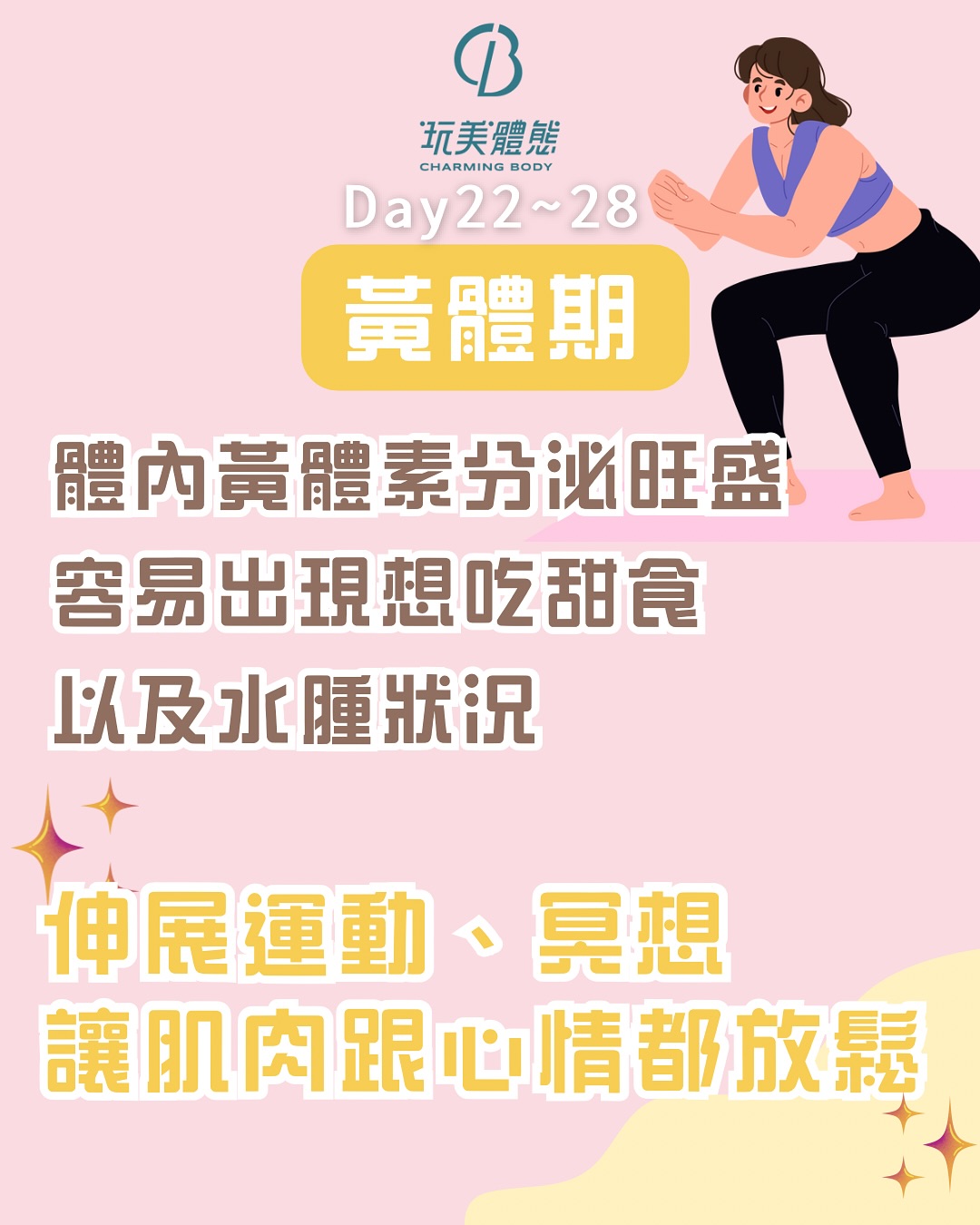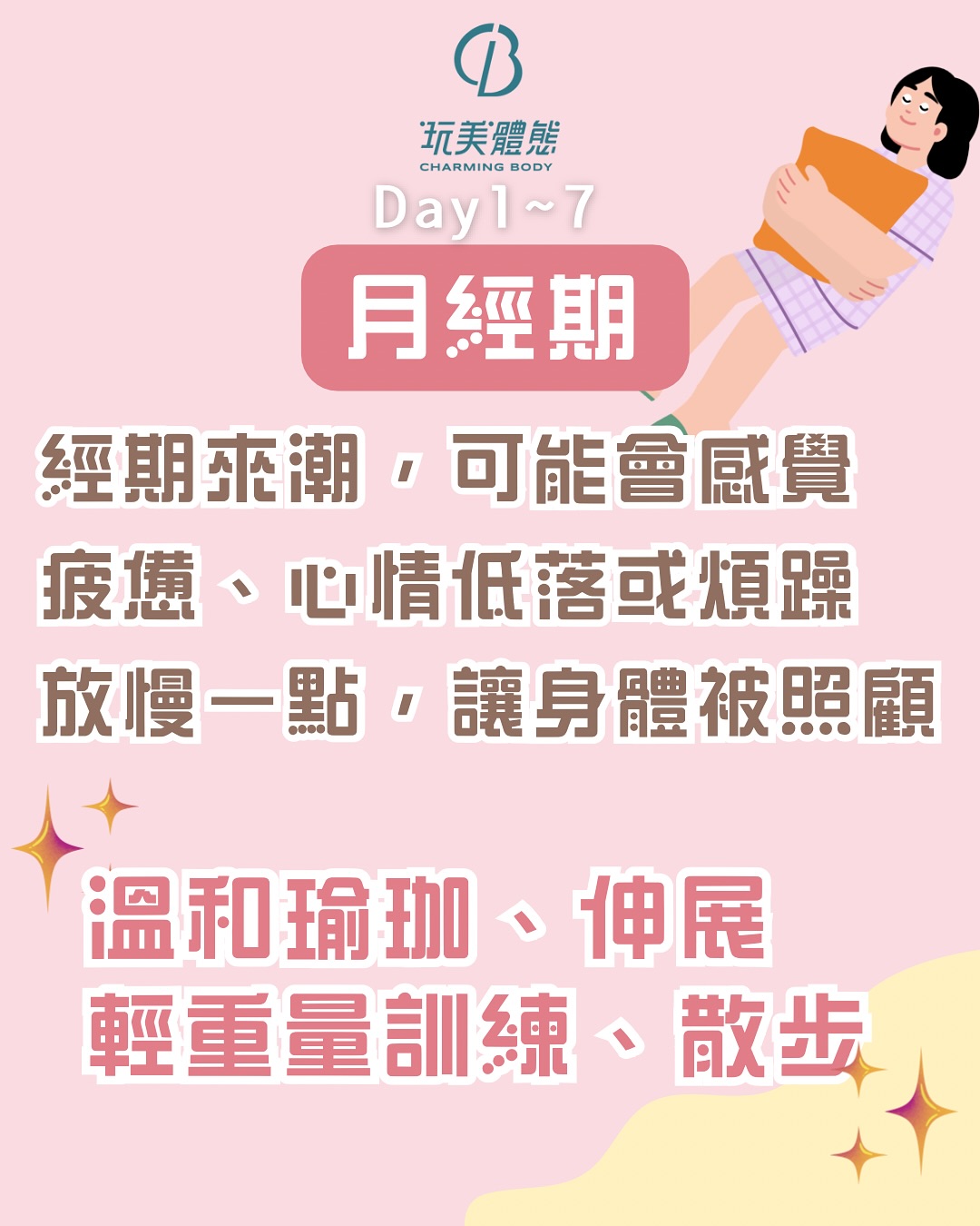 → 經期來潮,可能會感覺疲憊、心情低落或煩躁。