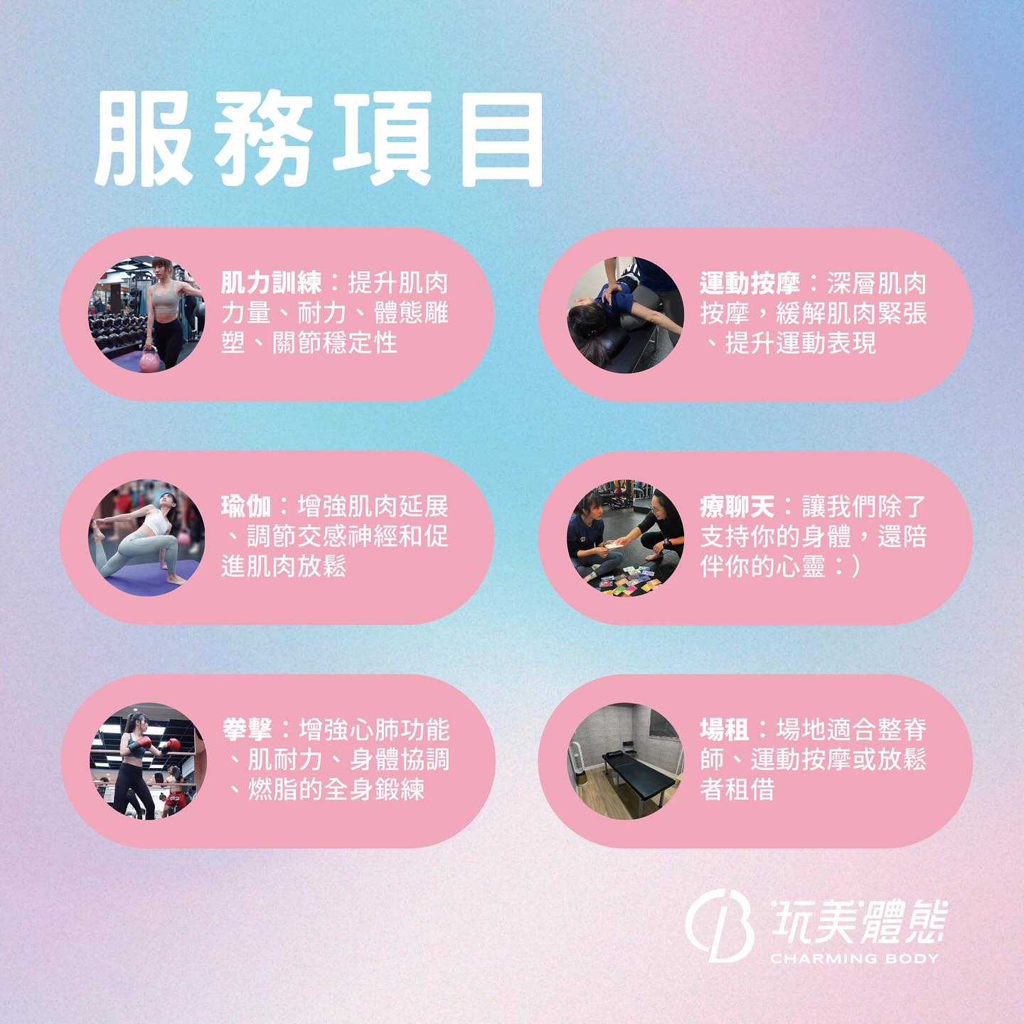 玩美體態Charming Body-板橋健身房,板橋健身教練,板橋一對一健身,板橋一對二健身